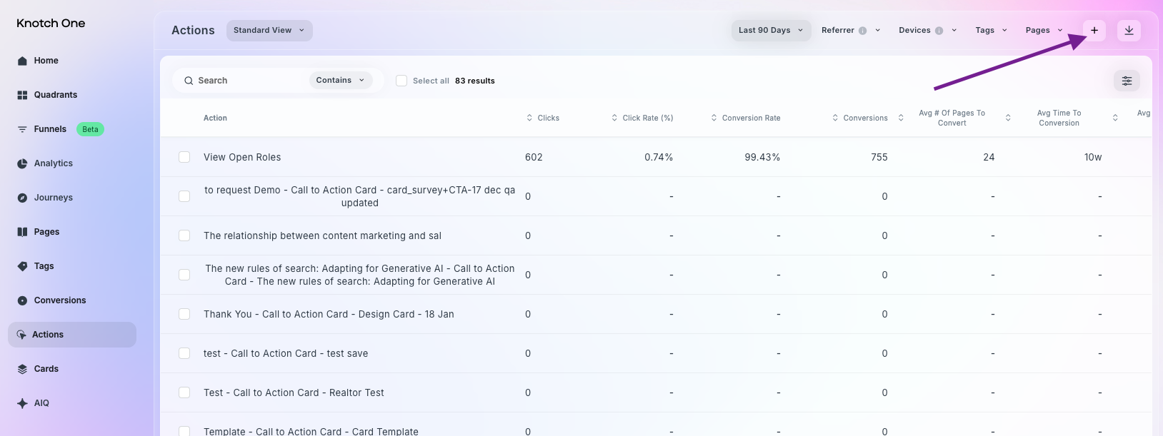 To create an action in Knotch One: